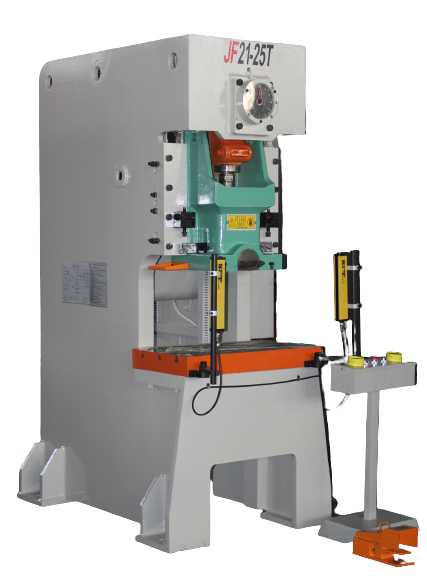 氣動沖床是一種高效低耗的加工設備,機身采用鋼板焊接結構,外形美觀。滑塊六面導向,導軌長且精度高;因采用氣動摩擦離合器,最大優點是能實現點動、寸動、單次、連續和運行中緊急停車。標準配置的光電保護,更能有效保護人身安全。電器配PLC控制和電子凸輪控制器,可選配變頻器與其他周邊設備自由連接搭配各種自動化設備。采用壓塌式或液壓過載保險器,油泵自動潤滑。63噸及以上機型采用電動調整封閉高度,數字顯示。對金屬材料和非金屬材料實現沖壓、成型、落料、拉伸等工藝,并憑其獨特的優點廣泛應用于汽車、航空、五金、電器、輕工等機械制造工業,并占據重要地位。